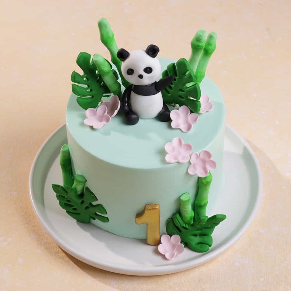 A slice of jungle magic! This panda cake turns every bite into an adventure of cuteness and joy. Lush greens, soft pastels, and a happy panda ready to make your celebration day special.