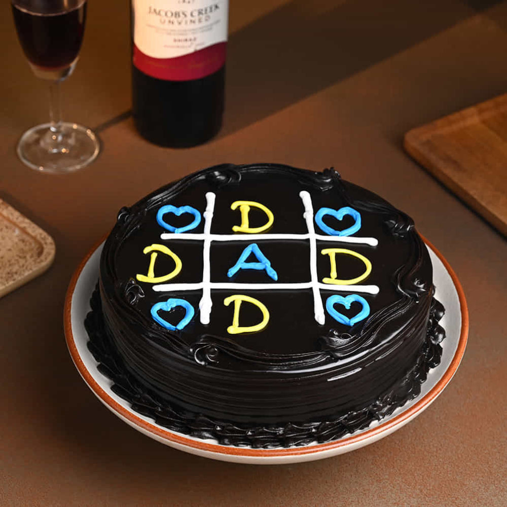 Savor in the irresistible allure of our Father's Day chocolate cream cake, where taste takes center stage and emotions come alive. This heavenly creation is a divine tribute to the fathers who hold a special place in our hearts. Immerse your senses in the rich, velvety layers of chocolate goodness, generously adorned with a sumptuous cream filling that will transport you to a realm of pure bliss. With its tic tac toe game featuring lovingly crafted "dad" and heart boxes, this cake not only satisfies the palate but also touches the soul. Make this Father's Day an extraordinary celebration of love with this extraordinary confection