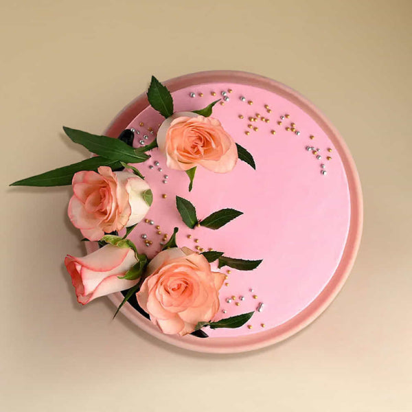 Blooming with beauty! This elegant pink cake, topped with delicate roses and a touch of dark chocolate drip, is perfect for any special occasion. A treat as lovely as the moments you cherish!
