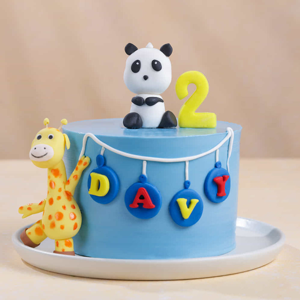 A burst of joy with a dash of cuteness, with its playful panda topper and cheerful giraffe, this cake turns little birthdays into picture-perfect memories filled with smiles, sweetness, and wonder